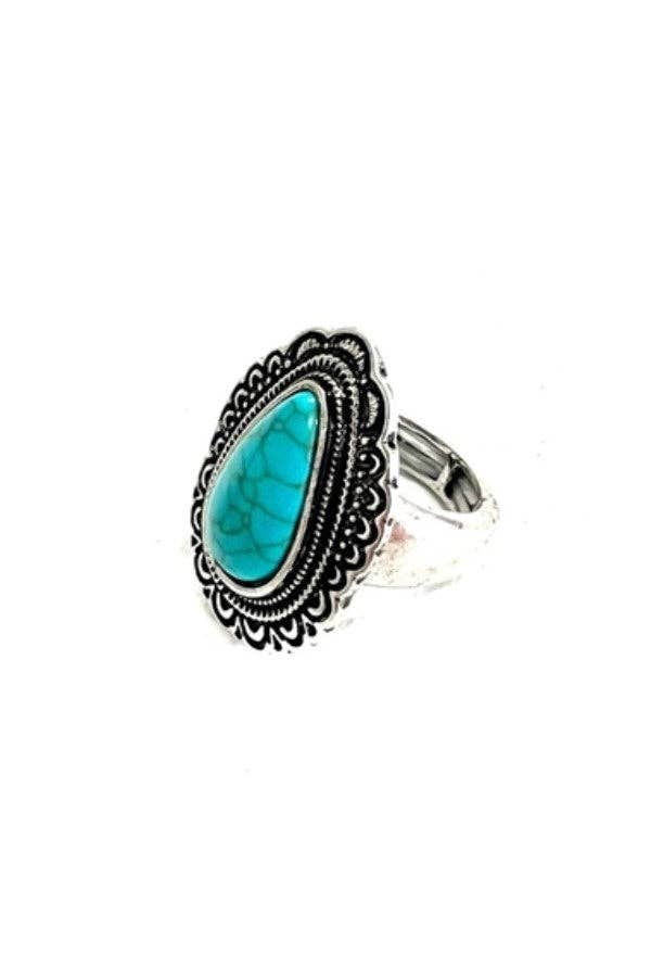WESTERN DESIGN TURQUOISE STONE STRETCH RING PART SIZE : 1X1.3 ONE SIZE FITS ALL