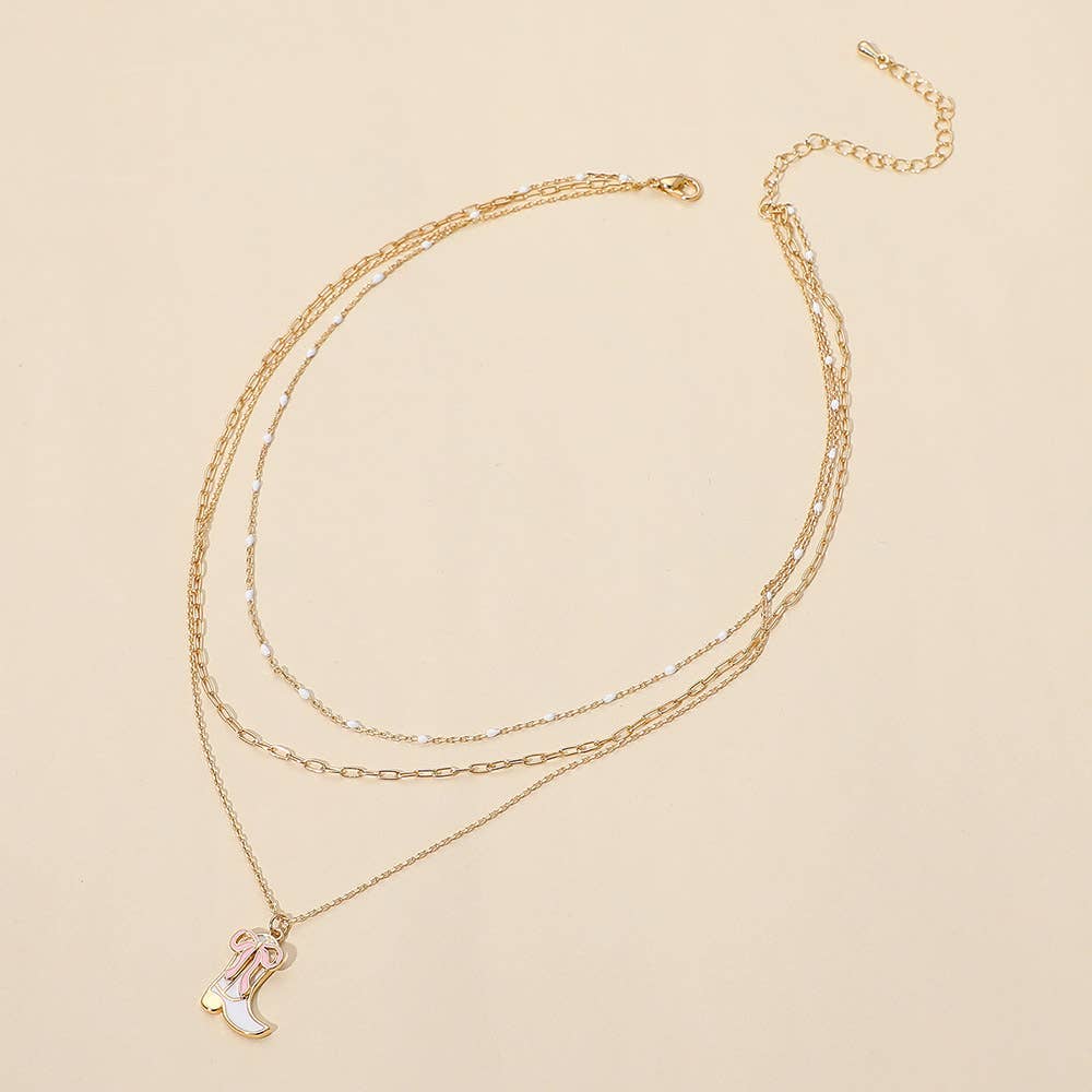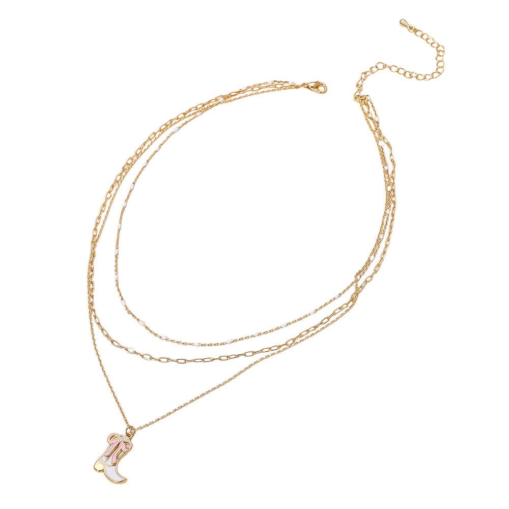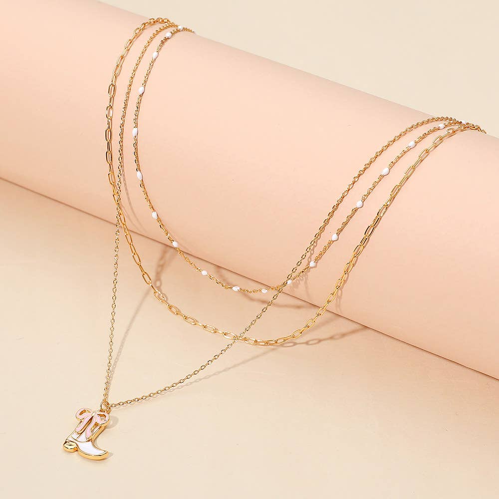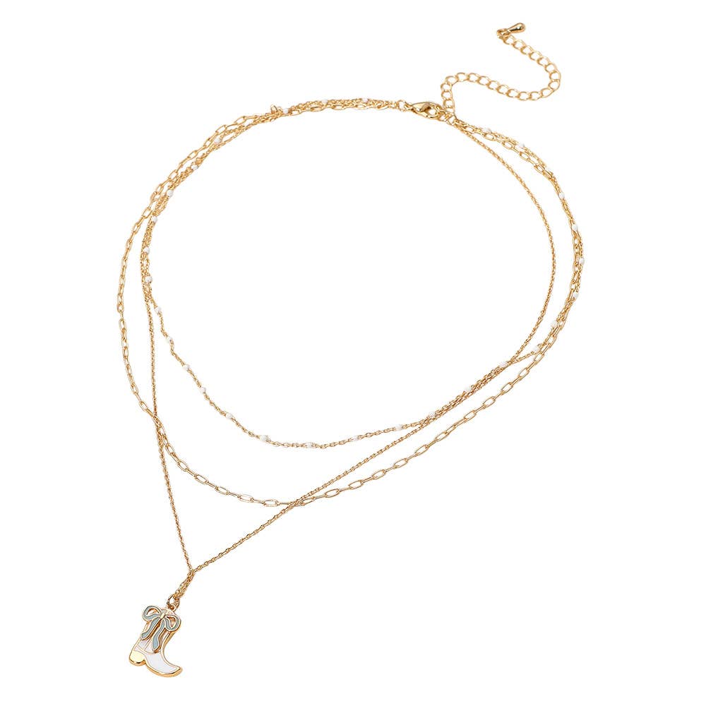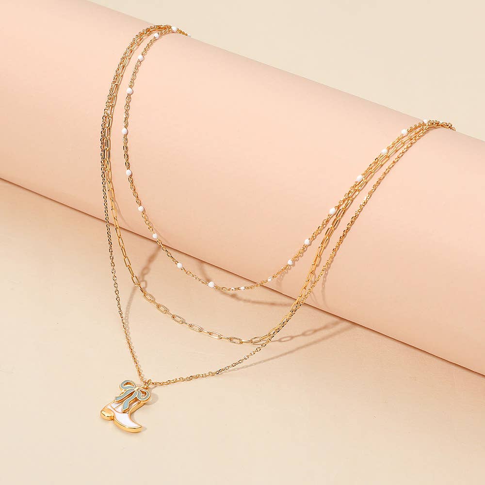 Enamel Bow Cowboy Boot Pendant Triple Layered Necklace